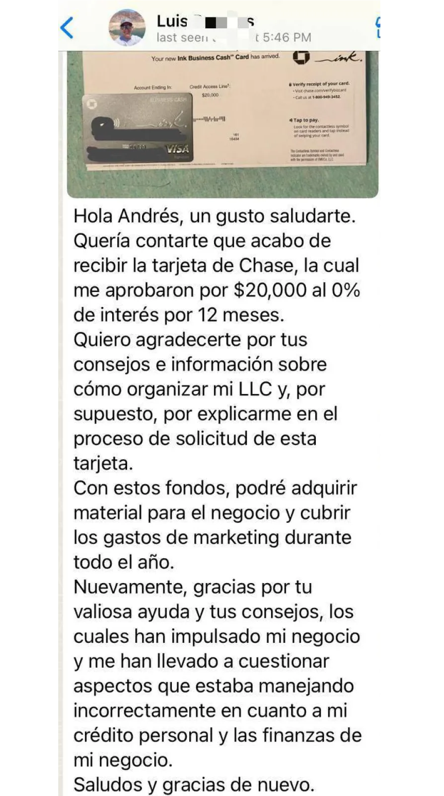 Luis: Logró obtener una tarjeta de crédito de negocios por 20.000 USD.